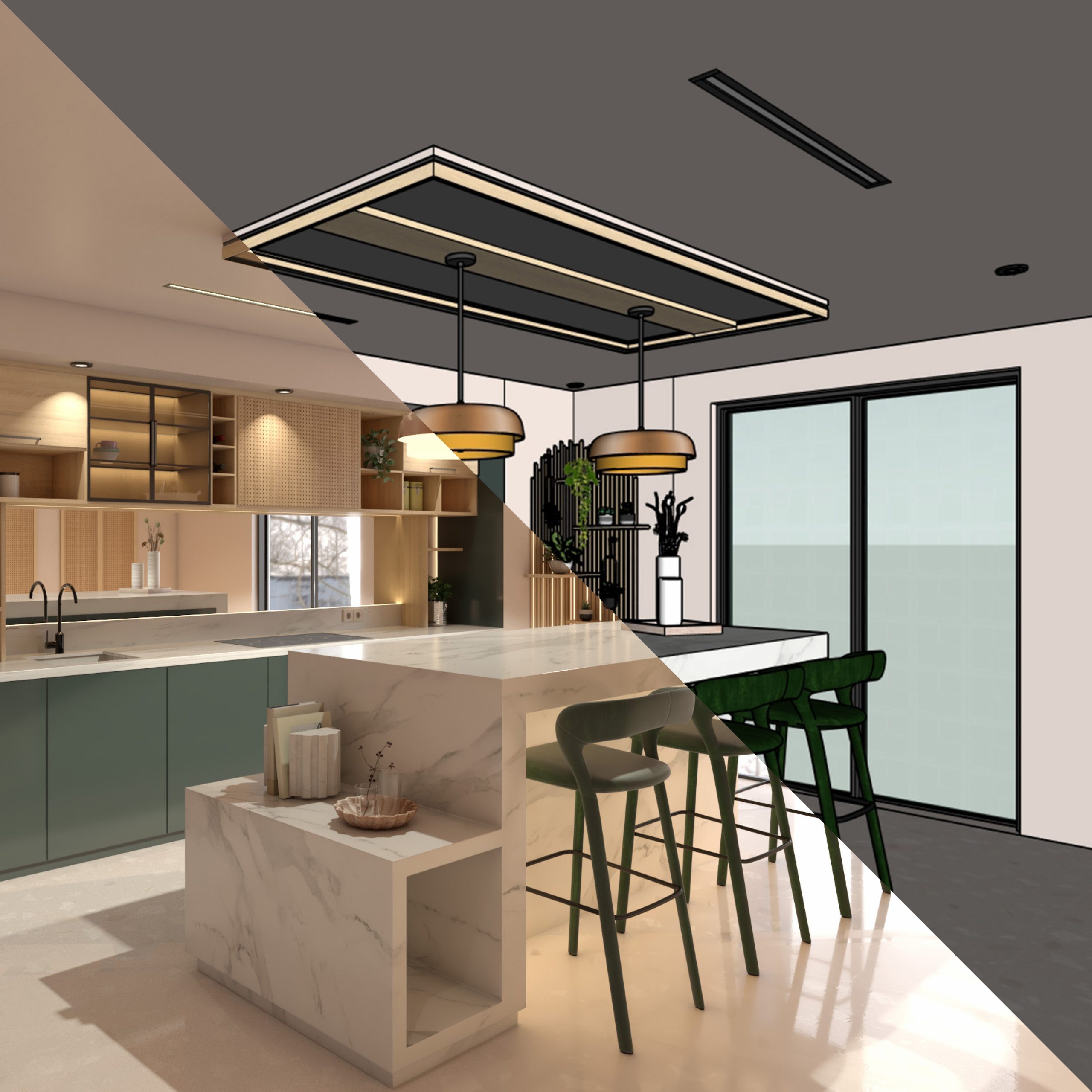 Le Rendu vous propose une vue 3D réaliste de votre projet, réalisée exclusivement à partir de votre fichier SketchUp (.SKP).